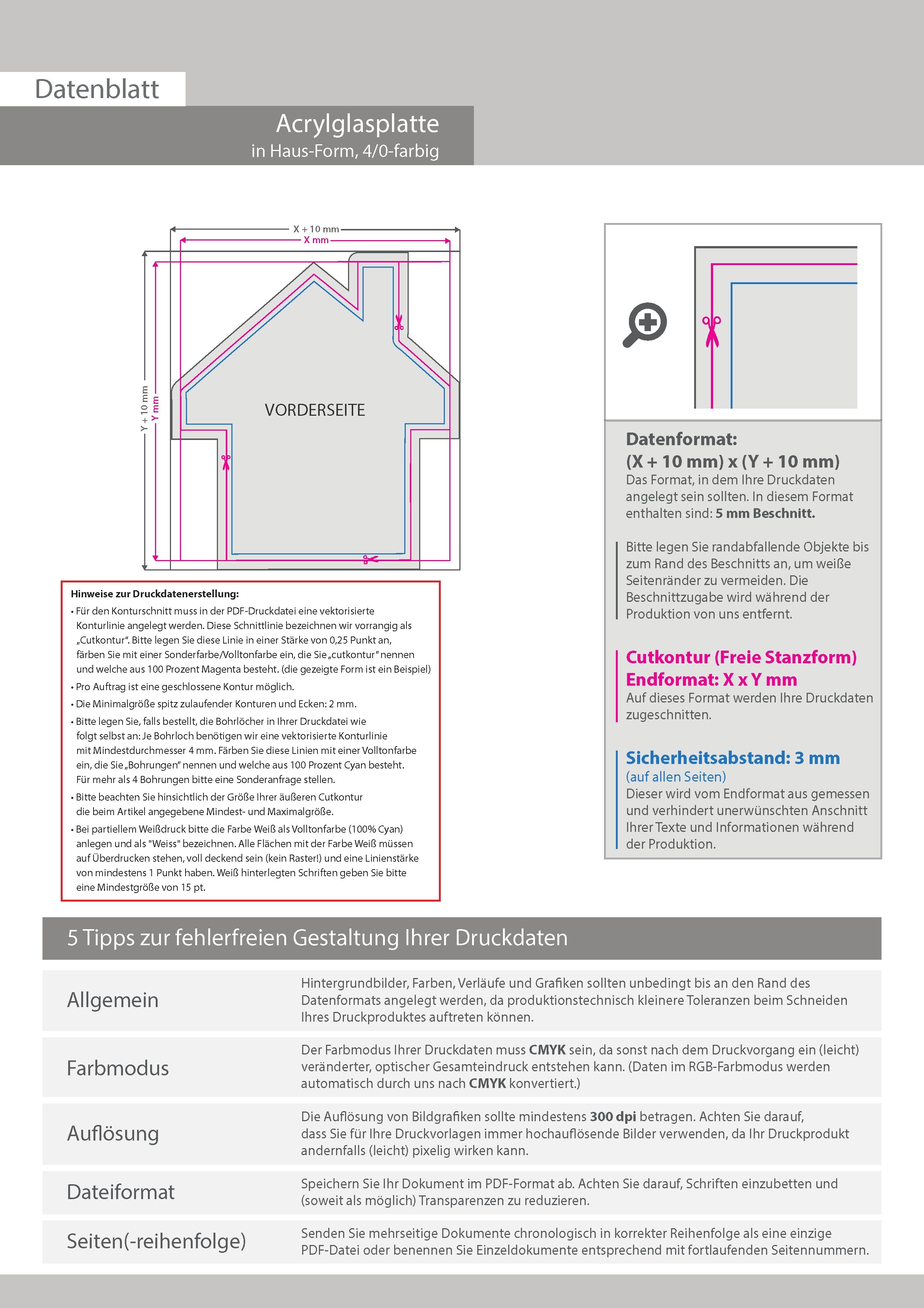 Acrylplatte mit Echtglasbeschichtung in Haus-Form konturgefräst