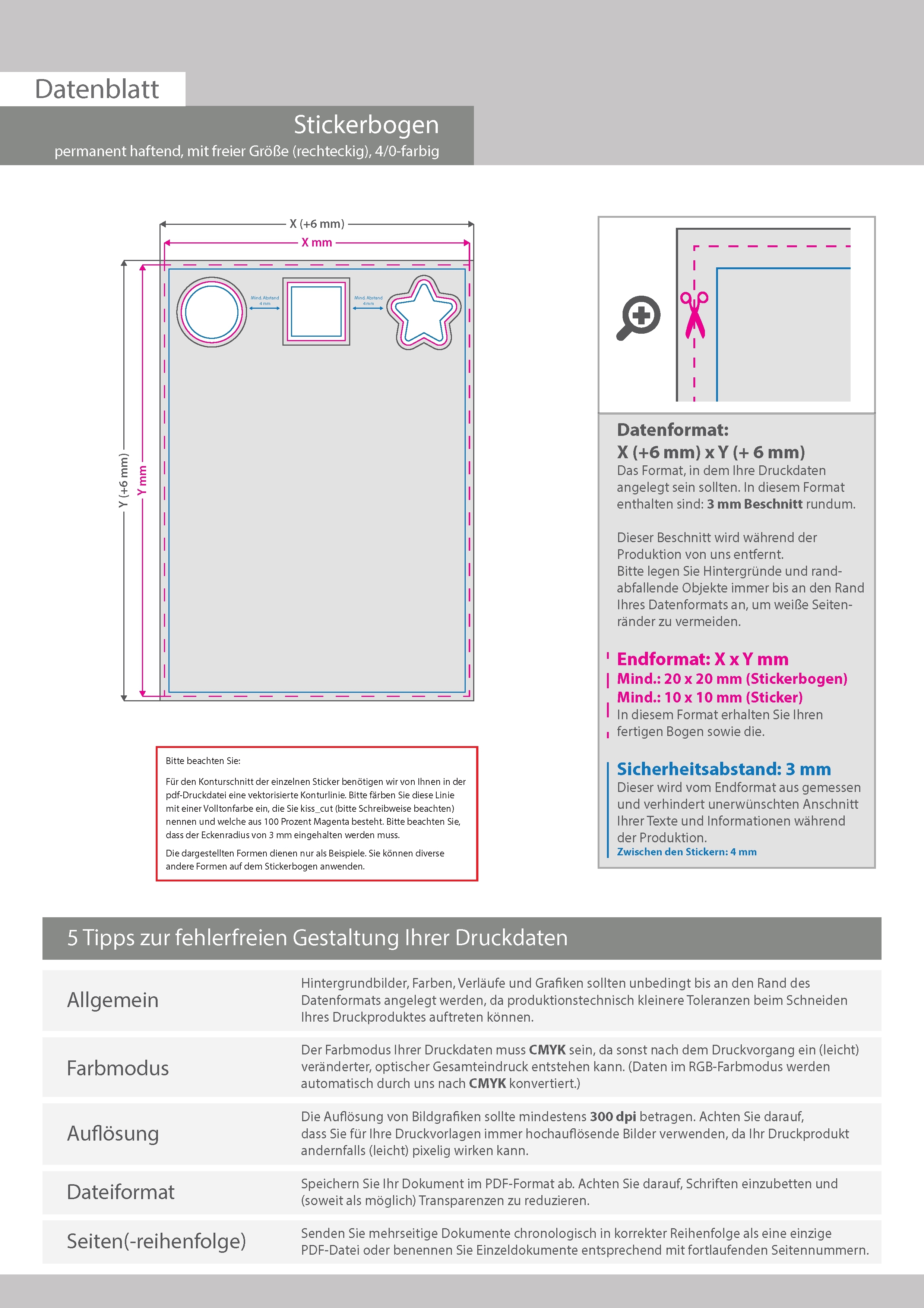 Stickerbogen permanent haftend 4/0 farbig bedruckt mit freier Größe (rechteckig)