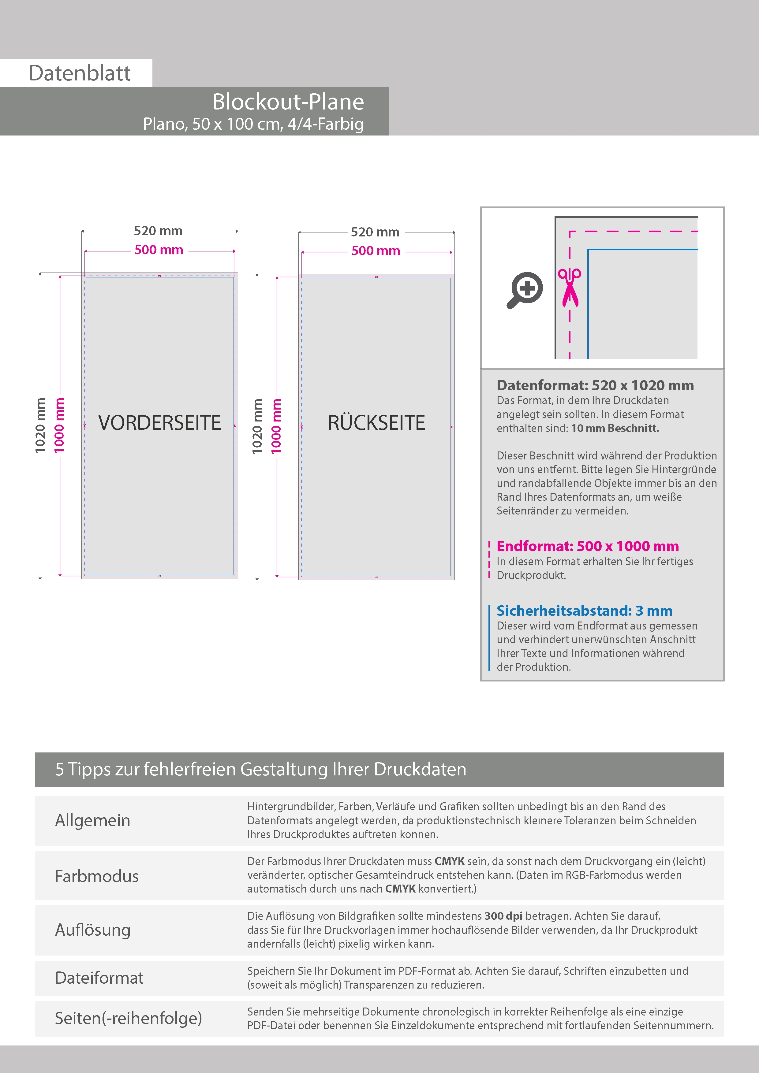 Hochwertige Blockout-Plane 50 x 100 cm, 4/4-farbig bedruckt, plano