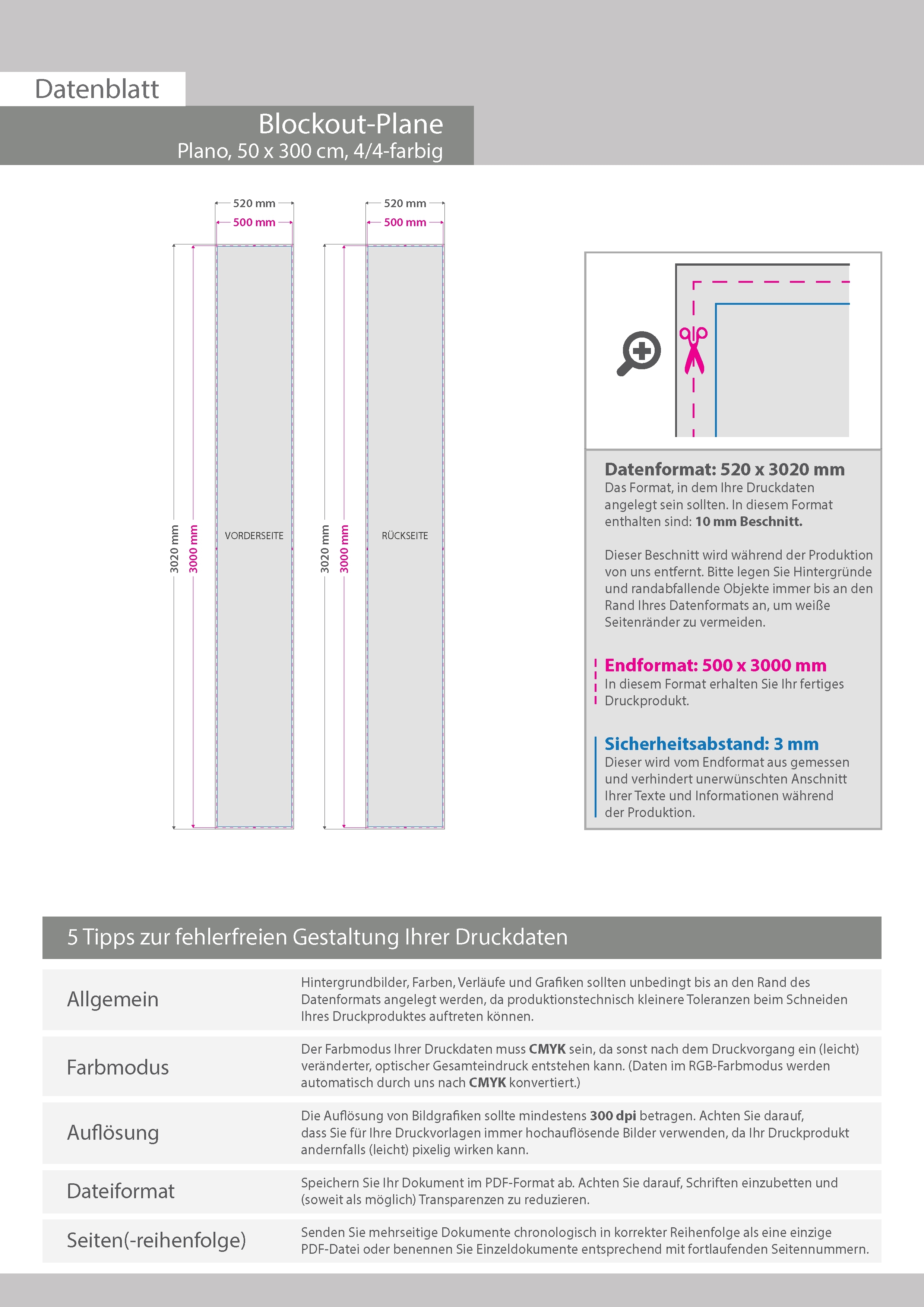 Hochwertige Blockout-Plane 50 x 300 cm, 4/4-farbig bedruckt, plano