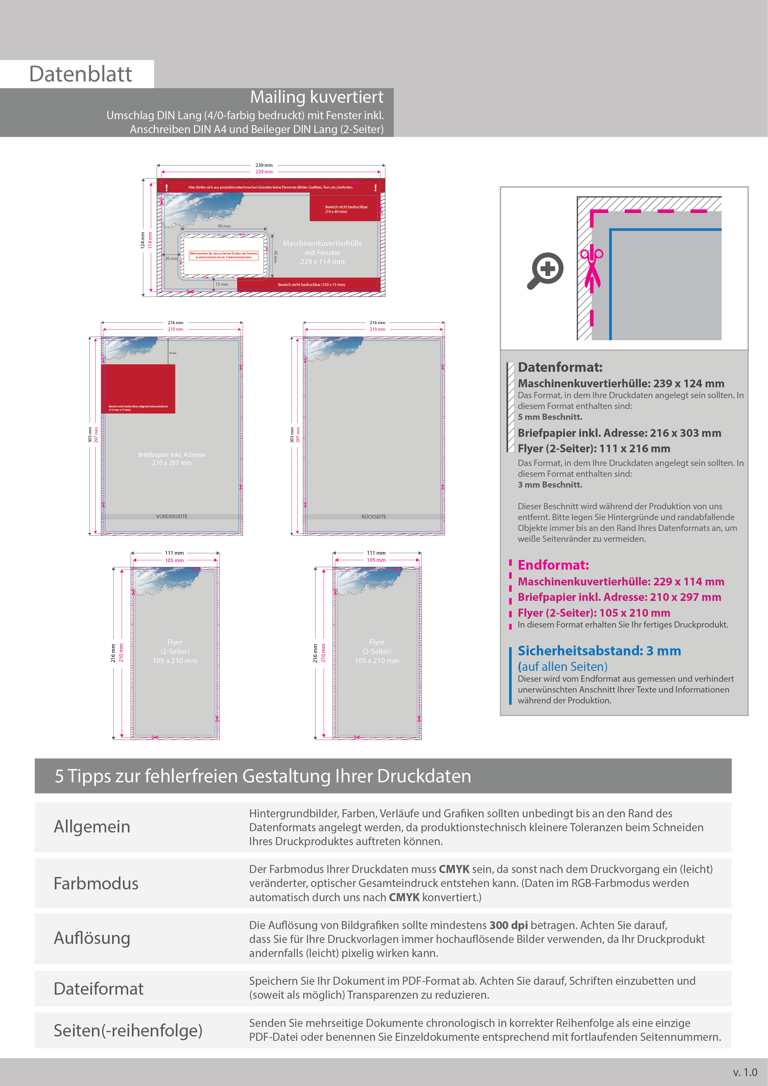 Briefhülle DIN lang (4/0-farbig bedruckt) mit Fenster inkl. Anschreiben DIN A4 und Beileger DIN lang (2-Seiter)